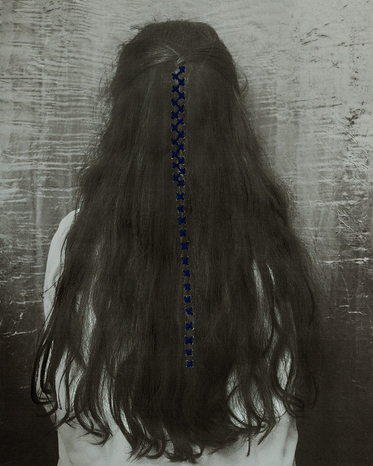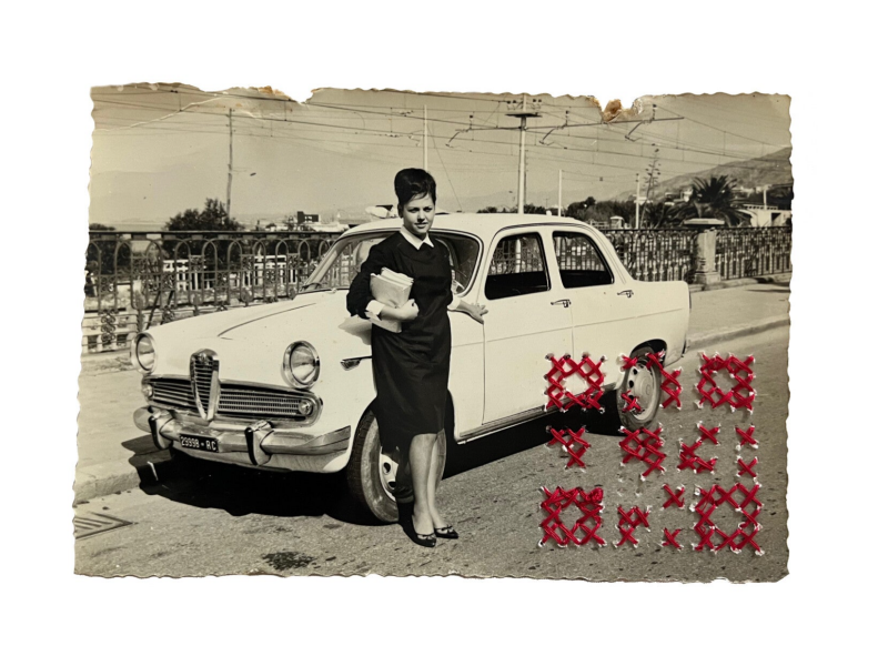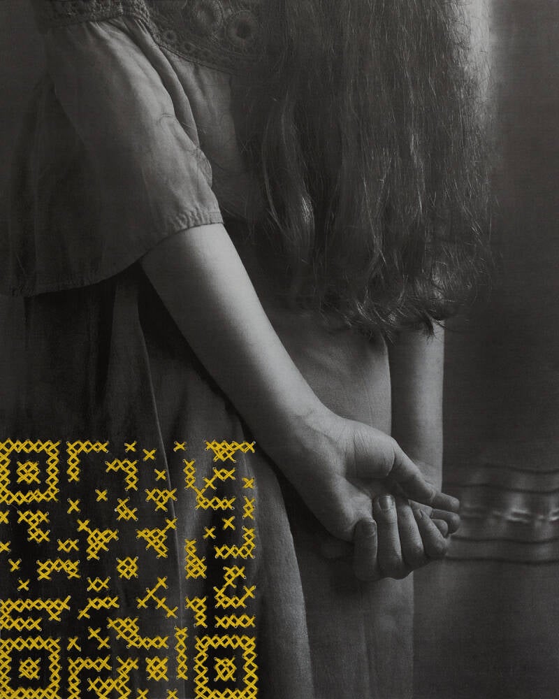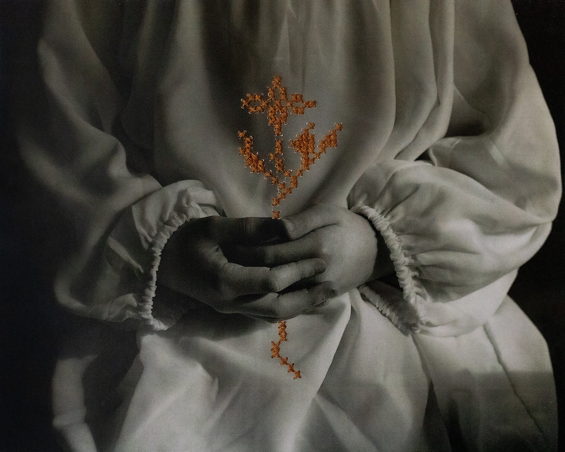 fotografia digitale e stampa con intervento di cucitura a mano, ricamo con la tecnica del punto a croce, 2023