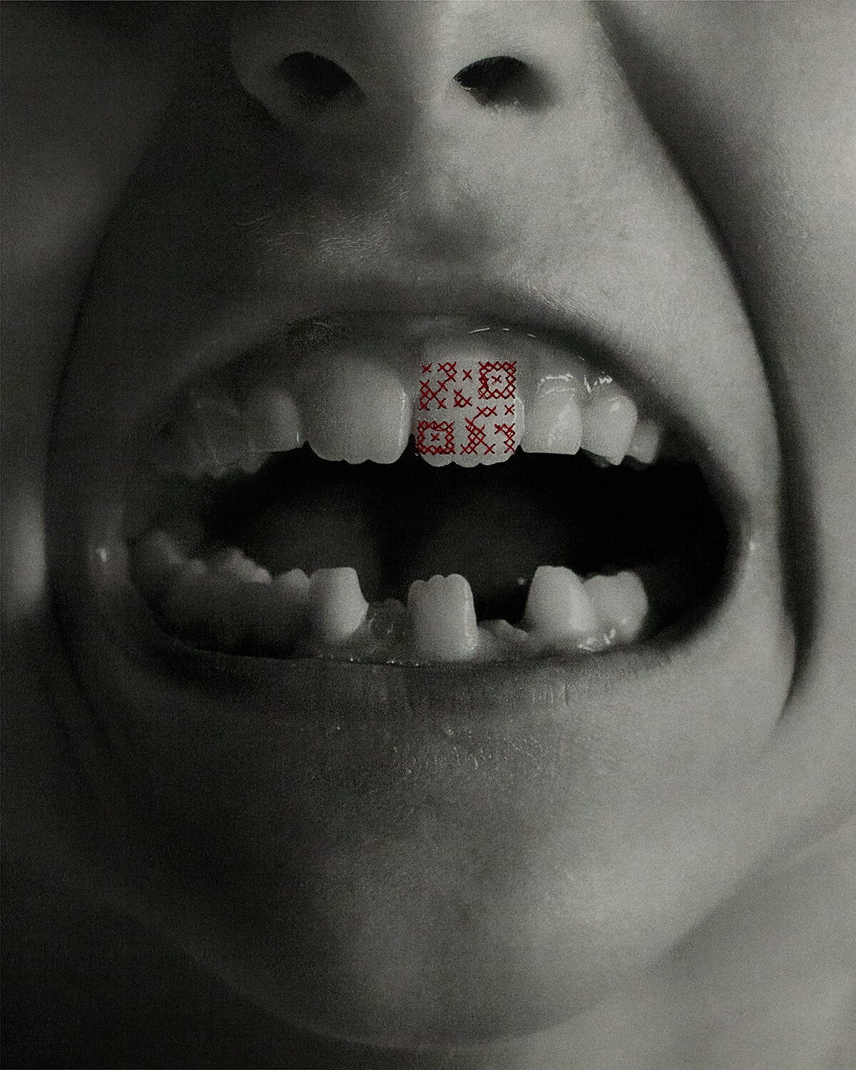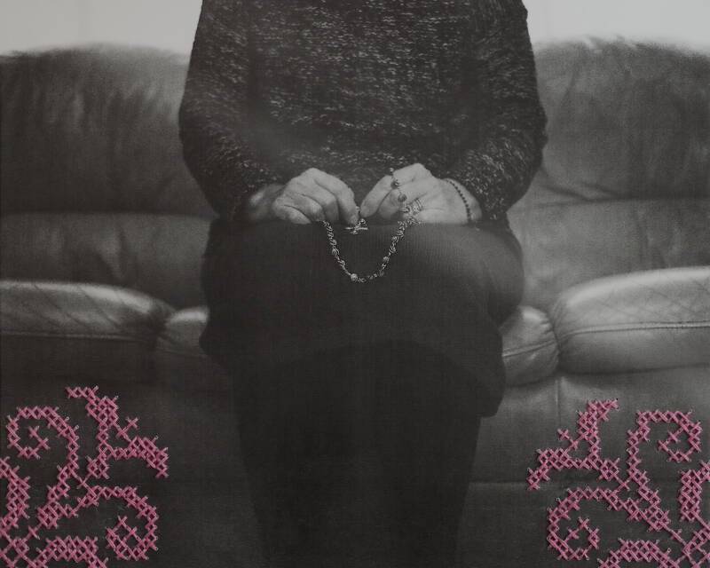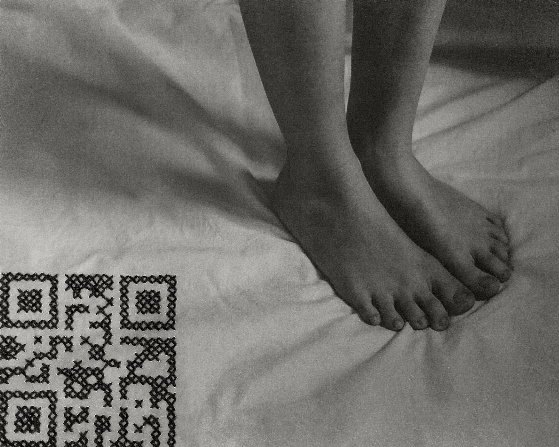 fotografia digitale e stampa con intervento di cucitura a mano, ricamo con la tecnica del punto a croce, 2023